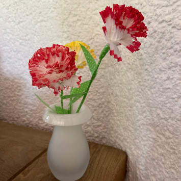 Sie können aber auch ganz einfach Kunstblumen selbst basteln, zum Beispiel diese Nelken.