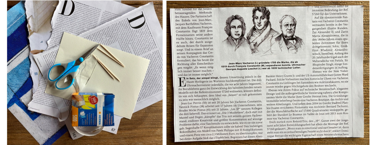 - 2 Textseiten/Fotodruck aus Zeitung, Zeitschrift oder Buch