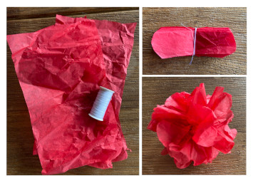 - Seidenpapier (ca. 6 Bögen à 50x70 cm für 2 Blütenbälle)