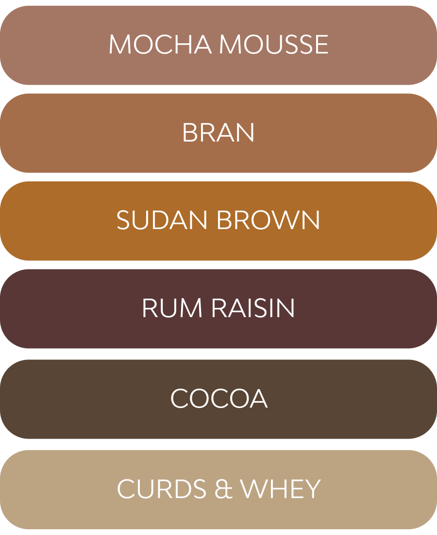 Brauntöne vermitteln uns ein Gefühl von Wärme, Geborgenheit und Harmonie. Kein Wunder, dass ein Braunton zudem zur Pantone-Farbe des Jahres 2025 gekürt wurde. Diese spiegelt immer den globalen Zeitgeist wieder und so entspricht Mocha Mousse, das an Kakao, Schokolade und Kaffee erinnert, unserem Bedürfnis nach Behaglichkeit.
