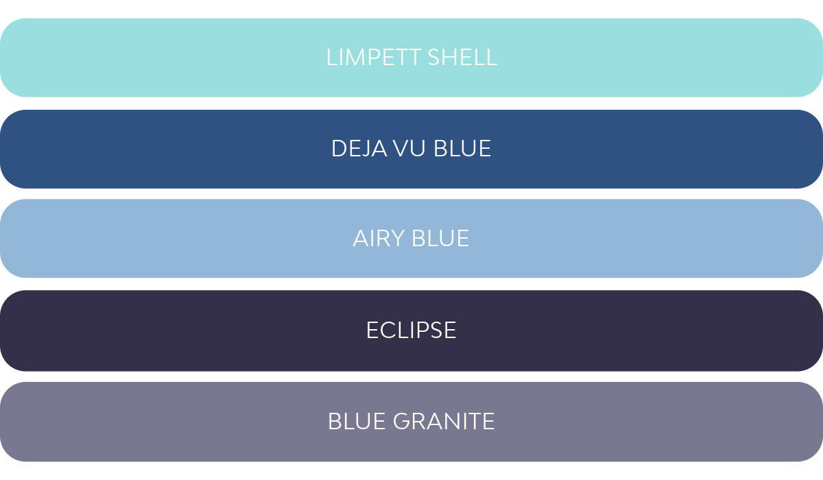 Die Grundfarbe Blau kann nicht durch Mischen hergestellt werden, schafft in Verbindung mit anderen Farben und „unbunten“ Farben aber ganz besondere Blaunuancen. Die Blautöne für die aktuellen Frühjahrs- und Sommerkollektionen stammen vor allem von der New York Fashion Week. Da wäre zum einen Limpet Shell, ein helles und freundliches Türkisblau, oder das kräftige, tiefblaue Déja Vu Blue. Zeitlose Blautöne wie das an einen Nachthimmel erinnernde Eclipse oder das kühlere, aber dennoch Halt gebende Blue Granite sind ebenfalls Blaukreationen aus New York. Airy Blue, ein helles Blau aus London, wirkt ausgleichend und wie eine sichere Basis für unsere authentische Neuausrichtung.